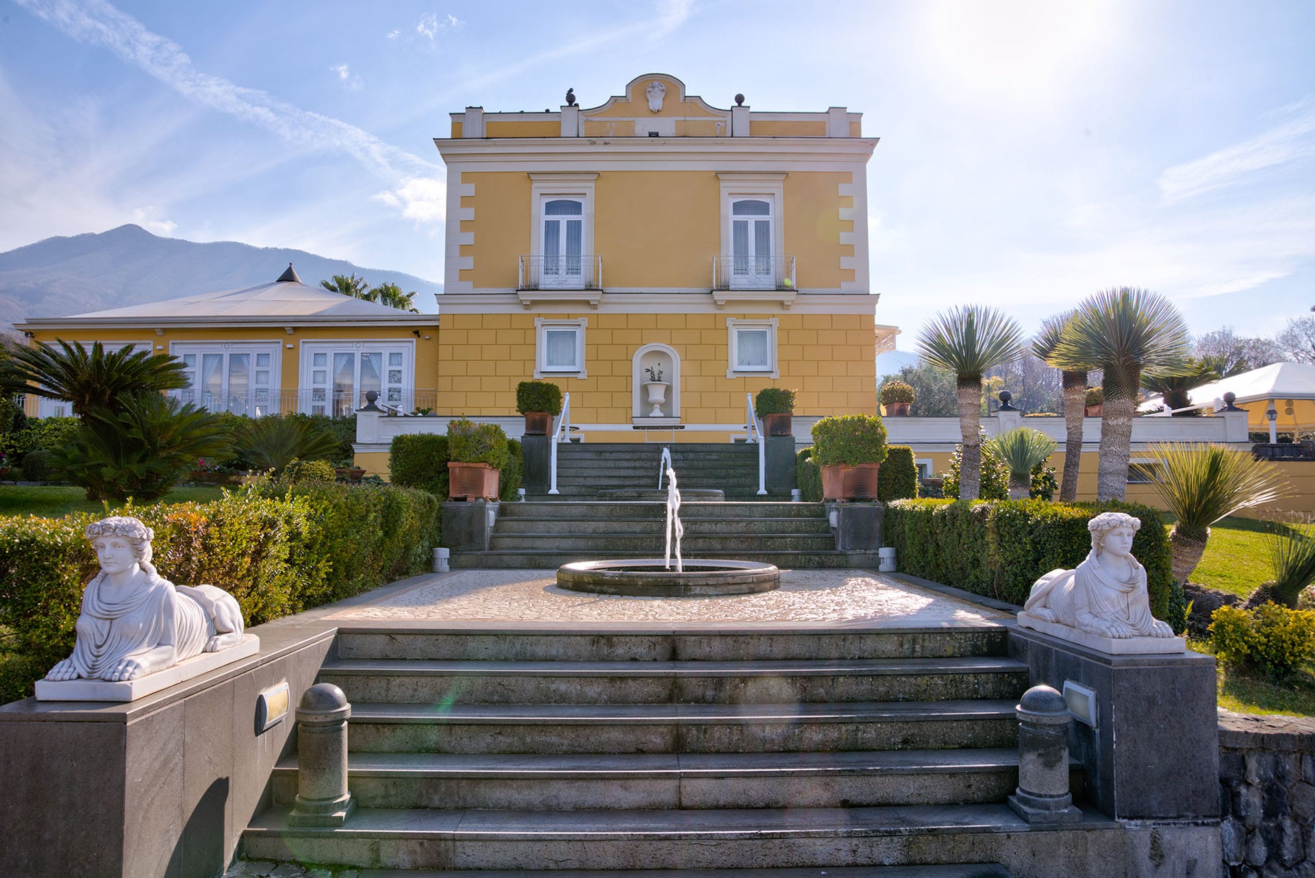 A fare da cornice a questa favolosa villa per matrimoni e cerimonie a napoli, l’incantevole scenario naturale dell’ampio parco nazionale del vesuvio, ricco di piante e alberi secolari che circonda con grazia la struttura.